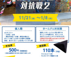 今年もホームジム対抗戦やります。 無人営業中でも登れますが、成績表をもらえるのはスタッフのいる時間帯になります。 無人時間に先に登っといてそれを覚えといて、あとで記入とかでもOKです。 営業時間は祝日でも月曜日と水曜日は・・・